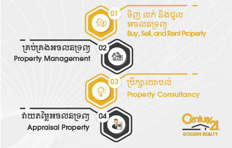 We convey the trust and full support of real estate service in our culture. We deliver the promise as we speak. We work not only as your agent but as your business partner that you can trust at all time. Century 21 Golden Realty, The Most Trustful Real Estate Company in Phnom Penh.